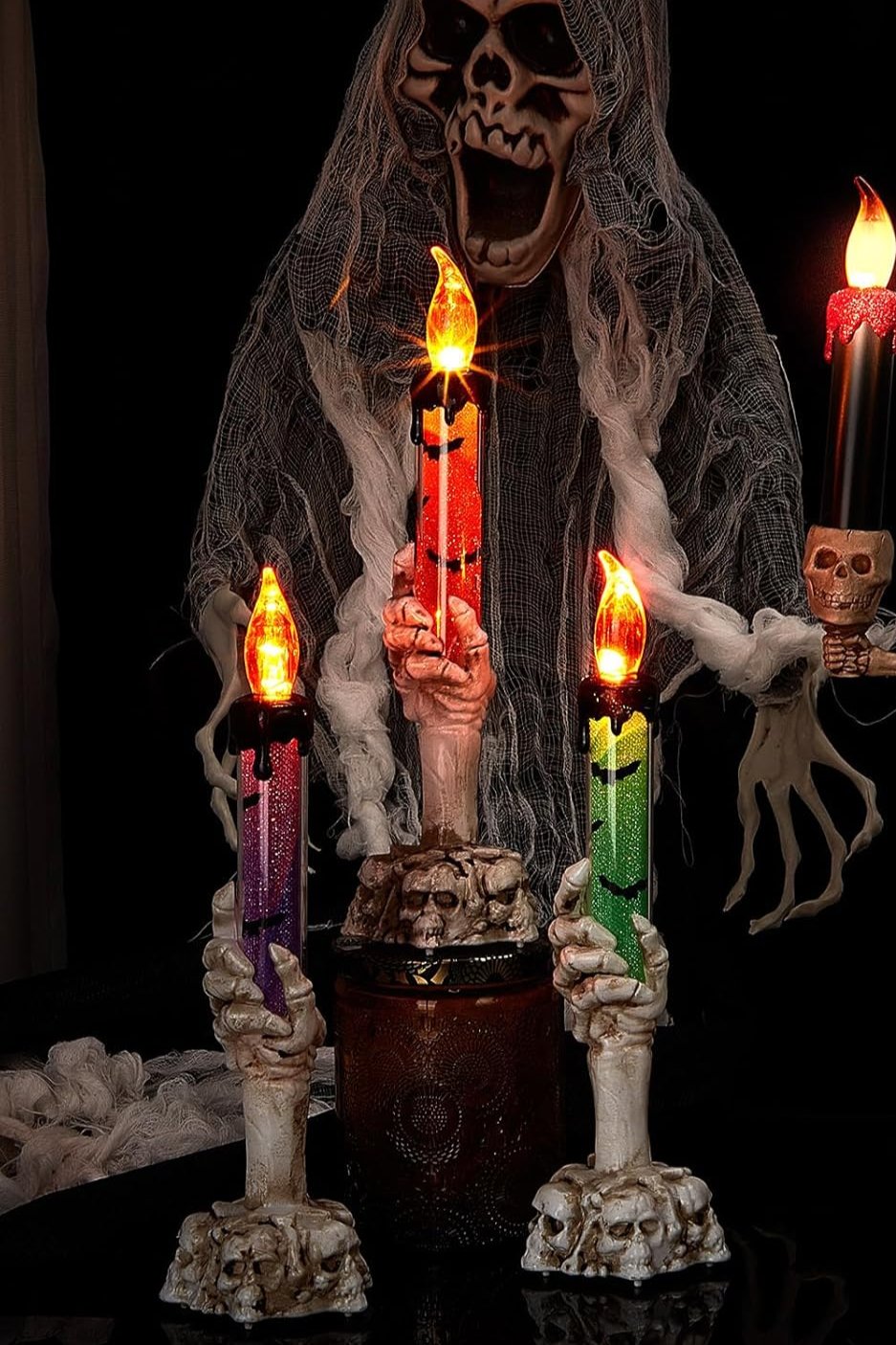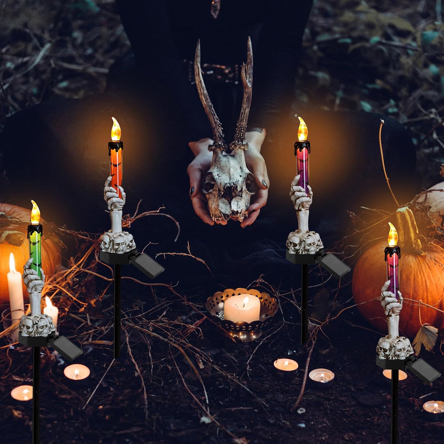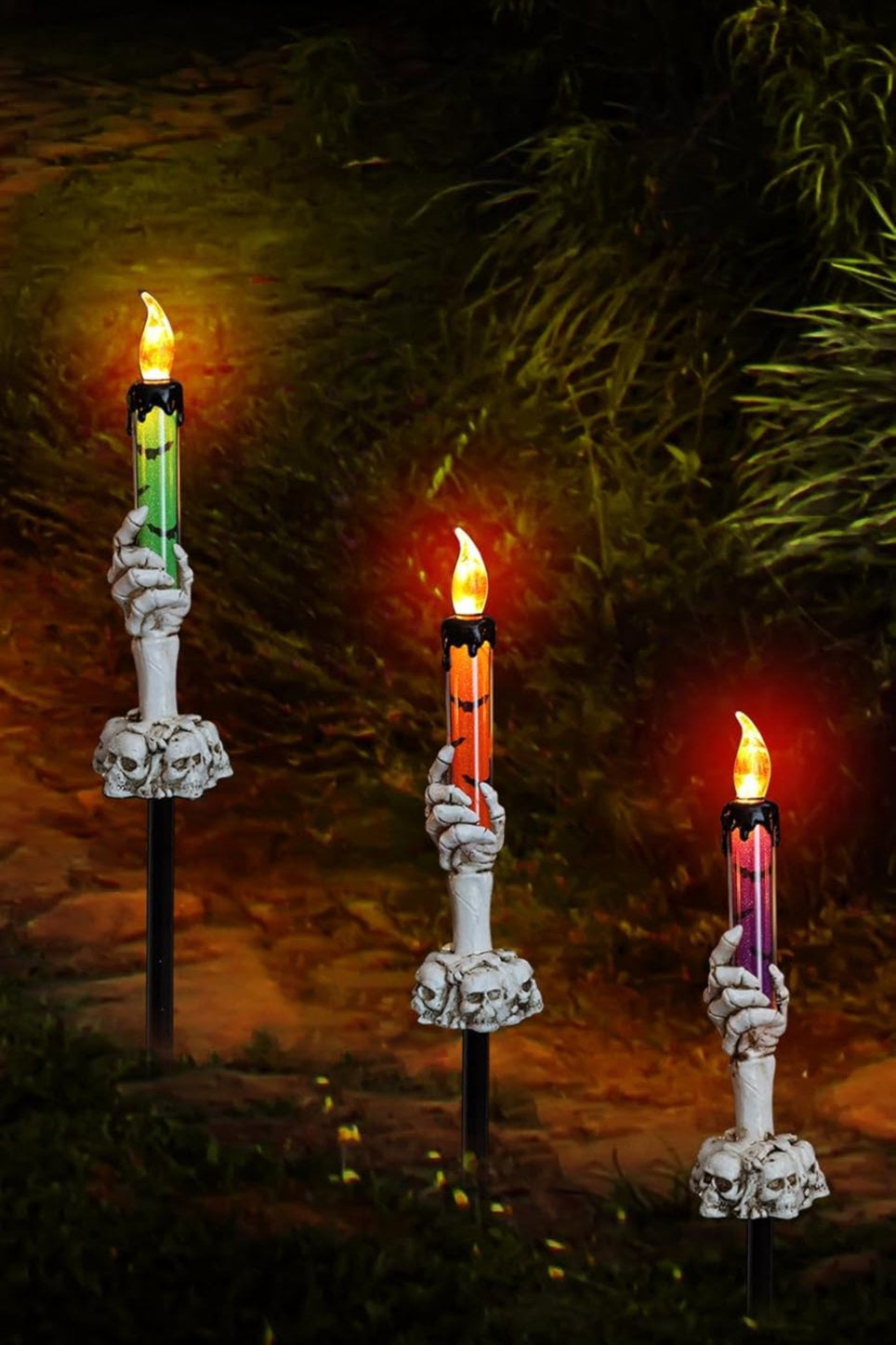 Lámpara de vela con forma de mano fantasma LED alimentada por energía solar